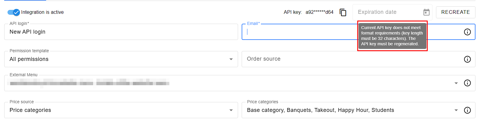 Klienci posiadający stare klucze API nie mogą ustawić dla nich daty wygaśnięcia w aplikacji Syrve, chyba że odnowią klucze.