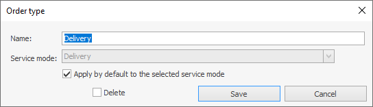 Typ zamówienia dostawy sklepowej | Typ zamówienia, który zostanie przypisany do zamówień dostarczanych przez kurierów restauracji. Dla tego typu zamówienia Syrve musi utworzyć typ zamówienia z usługą Delivery. ![]() |
