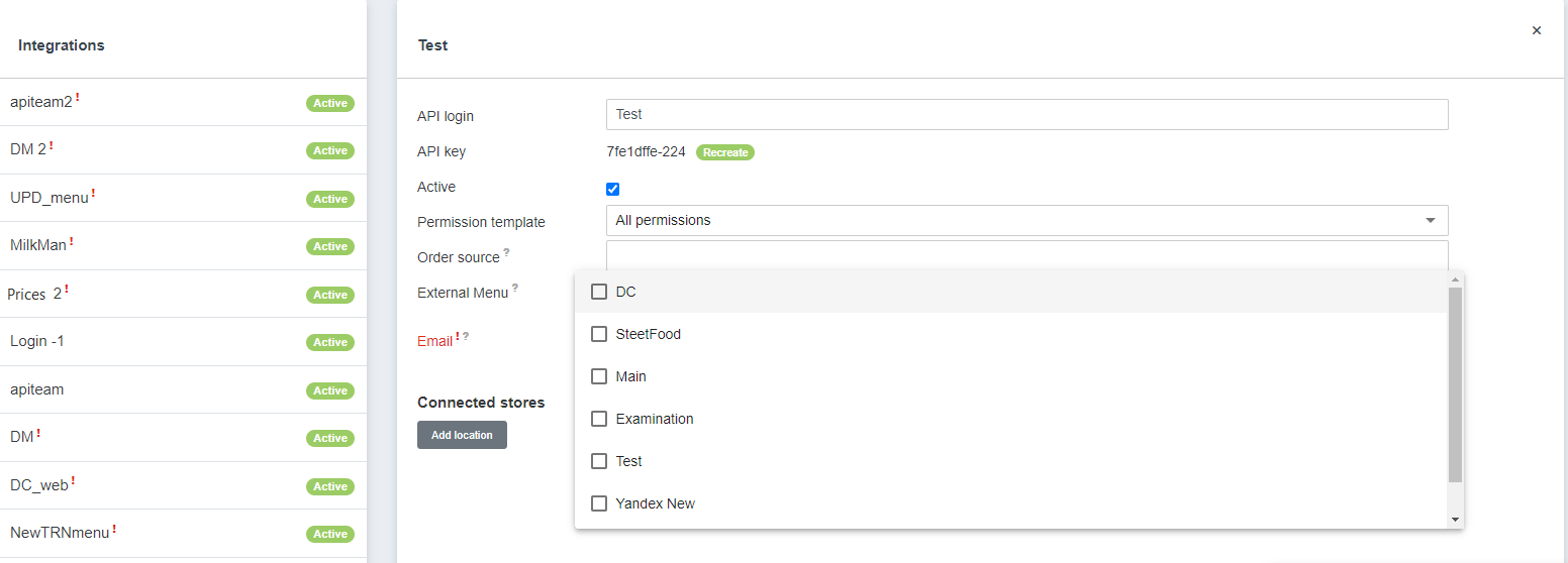 Aby pracować z zewnętrznymi menu za pomocą API, należy powiązać je z kontem Syrve Live API.