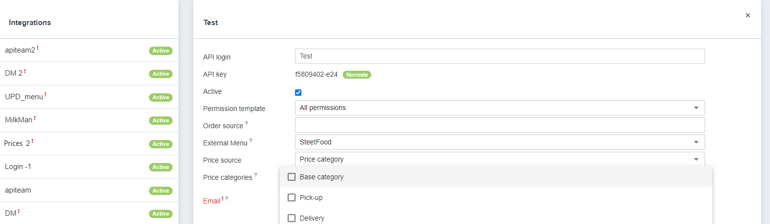 1. Restauracja chce ustawić inny skład dań w zewnętrznym menu dla różnych typów zamówień. Na przykład niektóre dania nie mogą być dostarczane przez kurierów, ale muszą być dostępne w zewnętrznym menu do odbioru osobistego. Mogą również występować różne ceny dla odbioru i dostawy.