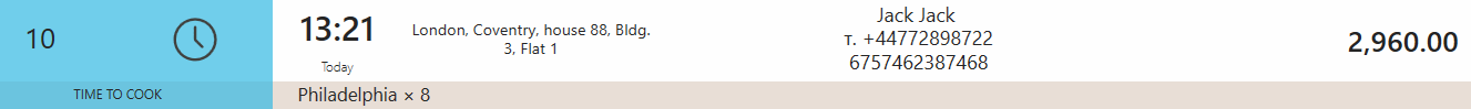 | ![]() | Gotowanie zamówienia nie rozpoczęło się na czas. Minęło pięć minut od momentu, kiedy powinno się rozpocząć. |