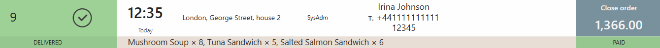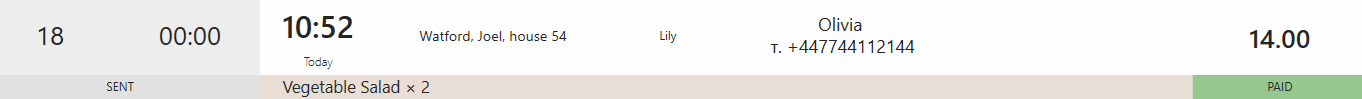 | Dostarczone | ![]() | Kierowca się spóźnia w drodze powrotnej. Nadszedł oczekiwany czas powrotu kierowcy, ale zamówienie na dostawę nie zostało jeszcze zamknięte. |