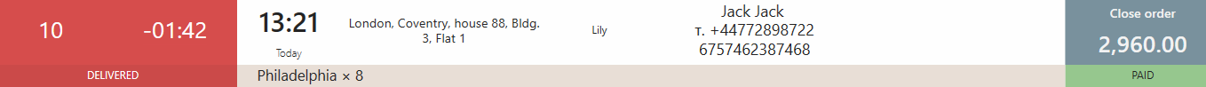 | Dostarczone | ![]() | Klient otrzymał zamówienie. Kierowca DeliveryMan lub menedżer zarejestrował czas dostawy. |