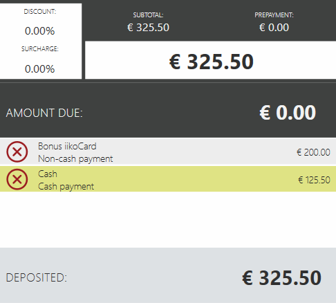 Zdobyte nagrody można wykorzystać do całkowitej lub częściowej zapłaty za zamówienie, zgodnie z ustawieniami programu nagród. W tym celu należy wcześniej utworzyć specjalny typ płatności, aby móc odliczać nagrody (szczegóły znajdują się w Przewodniku użytkownika Syrve Loyalty).