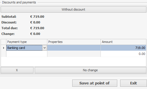 Kwotę płatności można zwiększyć, wpisując wymaganą wartość w polu Kwota. Jeśli wpłacona kwota jest większa niż kwota zamówienia, reszta zostanie wydana w punkcie sprzedaży podczas rozliczenia zamówienia. Aby przywrócić kwotę zamówienia, kliknij Brak reszty.
