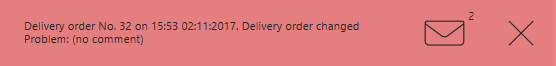 . Zamówienie dostawy zostało zmienione. Wyświetlane na żółto, jeśli nie ma wydrukowanych pozycji. Wyświetlane na czerwono, jeśli jest wydrukowane danie.