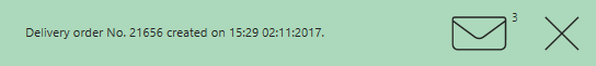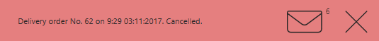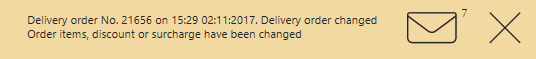 Wiadomości zawierające informacje o zamówieniach są wyświetlane w lewym górnym obszarze ekranu roboczego lub na ekranie uwierzytelniania w Syrve POS (jeśli terminal jest w trybie blokady). Aby przeglądać listę wiadomości, użyj przycisków < i >, możesz zamknąć to okno wiadomości.