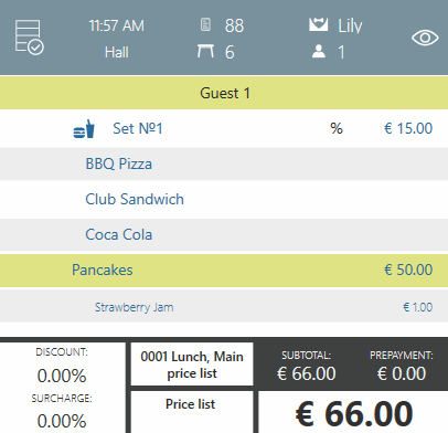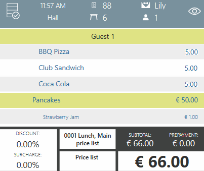 - Dodaj inne pozycje i w razie potrzeby wyślij zamówienie do kuchni.