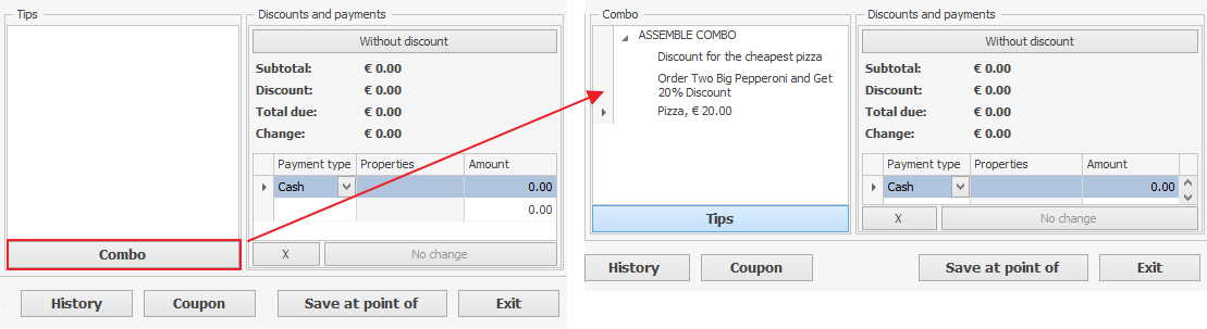- Kliknij Zapisz. Combo zostanie dodane do zamówienia.