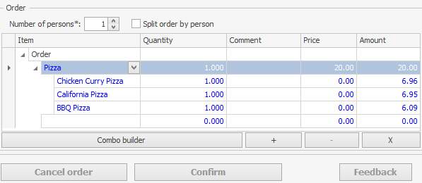 Wszystkie operacje (zmiana ilości, usunięcie) dotyczące pojedynczej pozycji można podobnie stosować do combo.