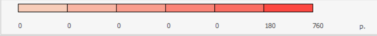 Pod mapą znajduje się legenda wyjaśniająca, jaki kolor odpowiada jakiej wartości parametru: im wyższa wartość, tym intensywniejszy kolor na mapie.