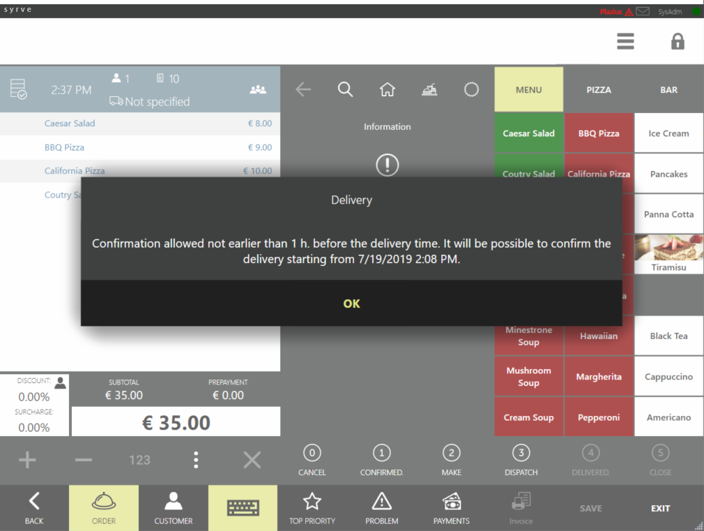 Niepotwierdzone dostawy są widoczne w Syrve POS, ale nie można rozpocząć przygotowania takich zamówień, ponieważ muszą być najpierw potwierdzone. Może to zrobić tylko pracownik z uprawnieniem Potwierdzanie dostaw (D_CND).