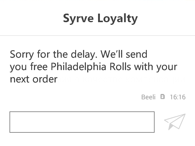 @Raw(“Przepraszamy za opóźnienie. Przy następnym zamówieniu wyślemy Ci darmowe Philadelphia Rolls”)