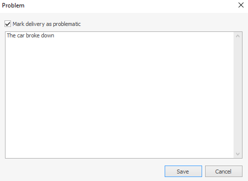 - Zaznacz Oznacz dostawę jako problemową i wpisz komentarz opisujący problem (nie więcej niż 1000 znaków).