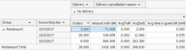 Raport może być określony według typów dostaw skonfigurowanych dla trybów obsługi – „dostawa przez kierowcę” oraz „odbiór osobisty”. Zobacz także Typy zamówień