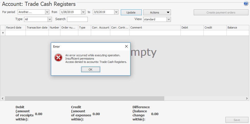 Pracownik nie ma dostępu do konta Kasy handlowe