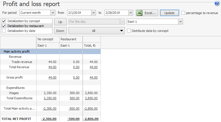W tym przypadku Lars może, po zalogowaniu się do Syrve HQ, przeglądać transakcje wszystkich sklepów. James — tylko transakcje East-1. Może zobaczyć tylko salda otwarcia i zamknięcia tego sklepu.