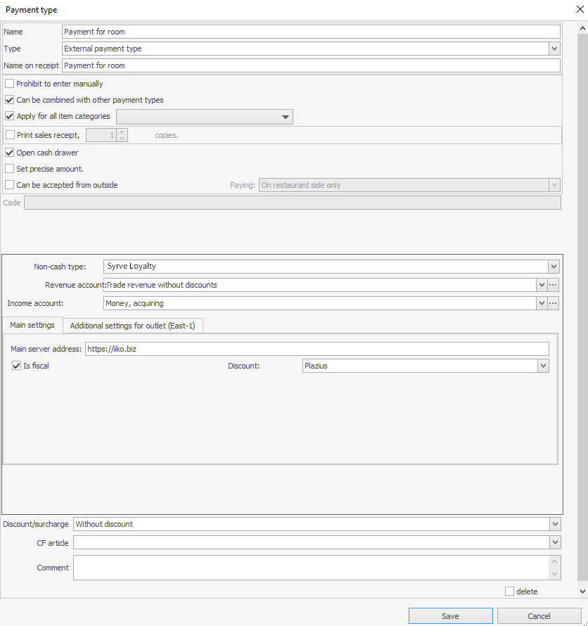Typ płatności zewnętrznej można utworzyć na przykład, aby akceptować płatności za pośrednictwem strony internetowej Twojego obiektu, modułu INPAS Dual Connector lub aby opłacić pokój hotelowy za pomocą systemu zarządzania Fidelio.