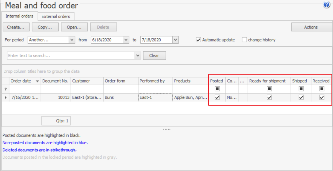 Możesz użyć Syrve HQ, aby monitorować zmiany statusów zamówień na liście zamówień wewnętrznych: