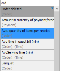 Wszystkie parametry są podzielone na grupy. Przycisk z nazwą grupy jest podświetlony na niebiesko. Po jego naciśnięciu i tym samym wyłączeniu podświetlenia, przyciski z parametrami odpowiadającymi tej grupie znikną z listy. Na przykład, jeśli nie interesuje Cię, w jakim miejscu serwowania (sekcji) zamówiono pozycję oraz na jakiej kasie zamknięto zamówienie podczas tworzenia raportu, możesz ukryć parametry grupy Organizacja.