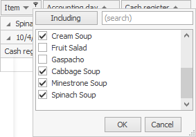 Sprawdź Przychody z pozycji według kas z różnymi typami filtrów, aby dowiedzieć się, jak działają filtry.