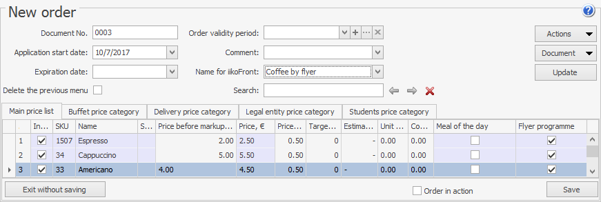 Pozycje programu ulotkowego można wybrać tylko w trybie jednorrestauracyjnym w Syrve HQ lub w Syrve Office (sklepie, w którym chcesz sprzedawać takie pozycje).