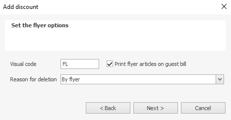 Konsumpcja posiłków w ramach programu rabatowego ulotki jest rozliczana za pomocą zapisów odpisów. W tym celu należy skonfigurować powód usunięcia oraz konto odpisu. Lista pozycji programu ulotki może być konfigurowana i zarządzana centralnie za pomocą aktualizacji cen.