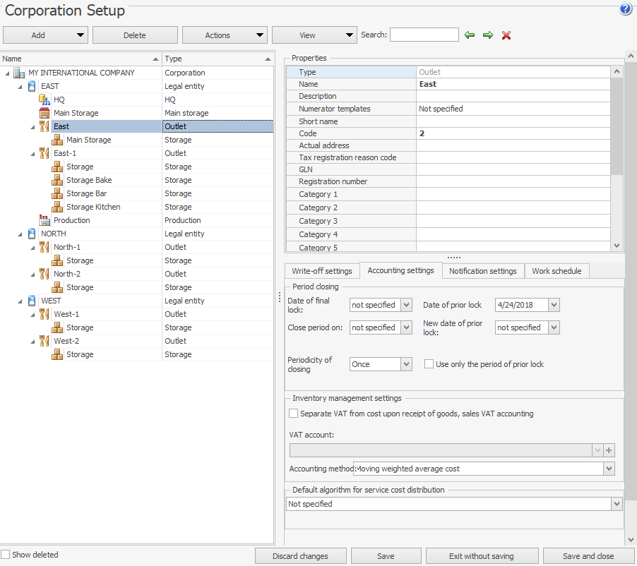 - Ustawienia zarządzania zapasami: konto VAT, jeśli jest wymagane.