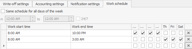- Możesz ustawić godziny pracy punktu sprzedaży na karcie Harmonogram pracy. Jest to wykorzystywane do planowania personelu.