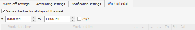 Jeśli punkt sprzedaży działa według stałego harmonogramu, zaznacz Ten sam harmonogram dla wszystkich dni tygodnia i określ godziny otwarcia i zamknięcia lub 24/7.