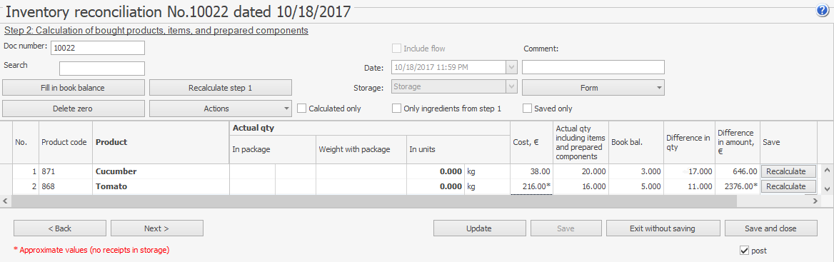 Jeśli koszt towarów w protokole likwidacji jest ustawiony według faktury zaksięgowanej o godzinie 18:00, wartości w tych dwóch dokumentach (automatyczne uzgodnienie inwentaryzacyjne i protokół likwidacji) będą się różnić.