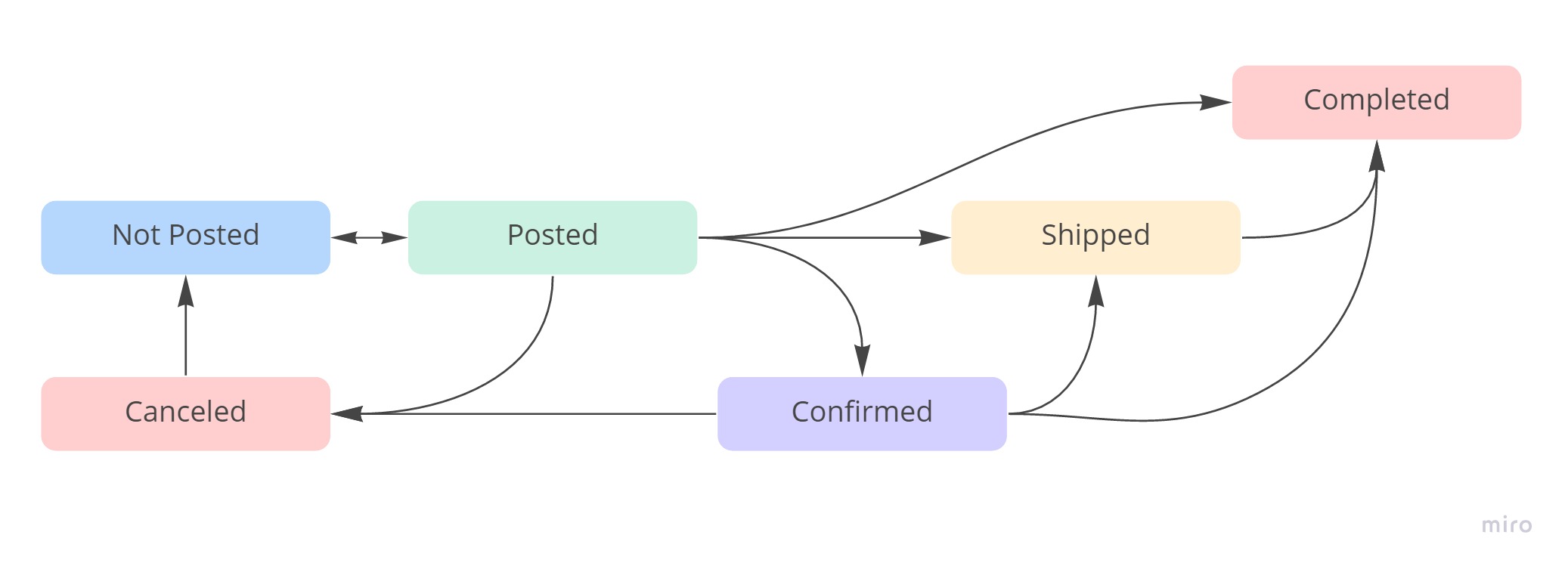 Możesz zmieniać statusy z Zaksięgowany na Potwierdzony, Wysłany lub Zakończony. Z Potwierdzonego na Wysłany, Anulowany lub Zakończony. Z Wysłanego tylko na Zakończony. Zamówienia wysłane nie mogą być anulowane.