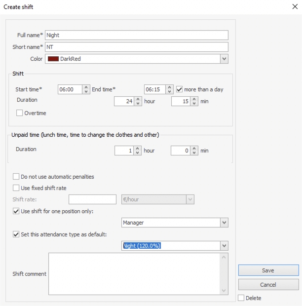 Zmiana określa początek i koniec dnia pracy pracownika, a także niektóre parametry wynagrodzenia, np. współczynnik korekcyjny i stałą stawkę.