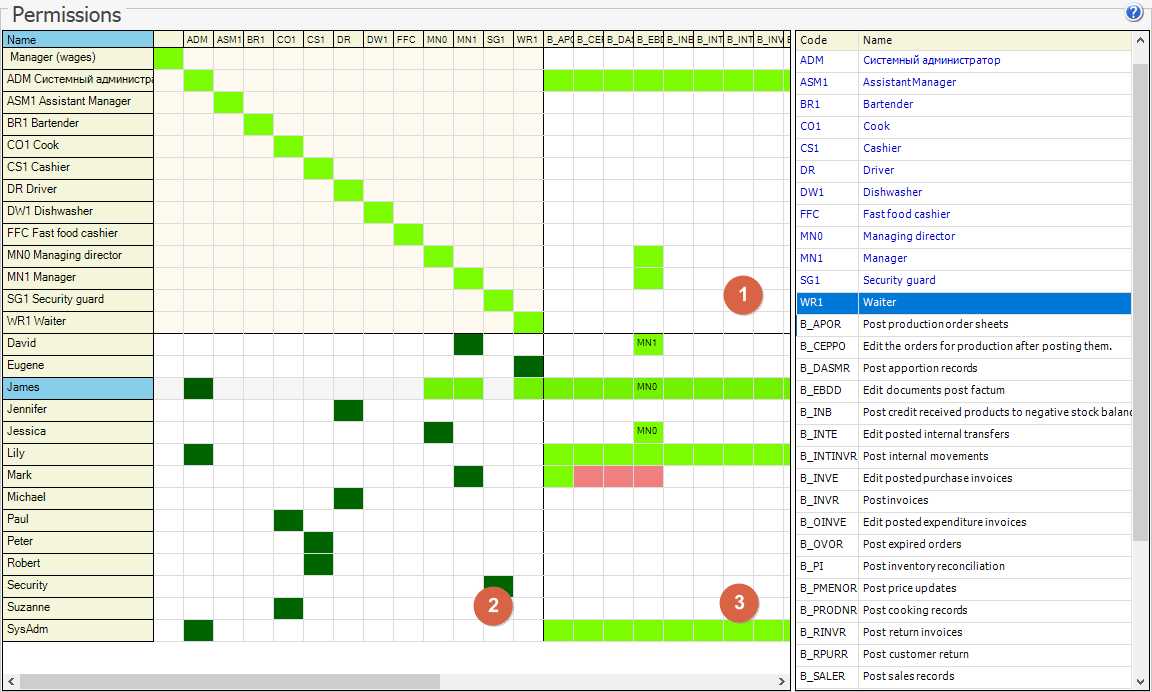 Pracownicy potrzebują określonych uprawnień, aby wykonywać różne operacje w Syrve Office lub Syrve POS: obsługiwać bazy danych, finanse i zapasy, otwierać, zamykać lub akceptować zmiany kasowe i tak dalej.