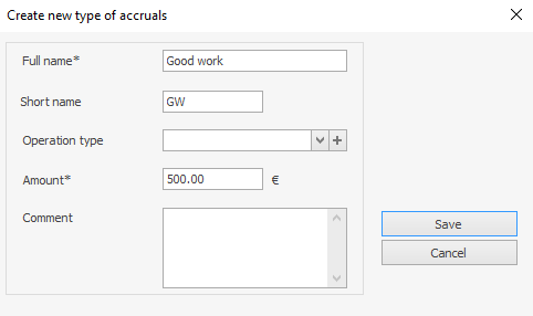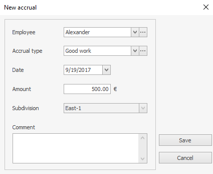 - W polu Rodzaj naliczenia wybierz z listy premię, którą chcesz przypisać. Klikając przycisk