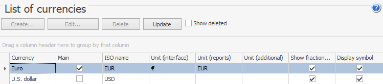 Jest ona edytowalna, ale nieusuwalna. Inne utworzone waluty są dodatkowymi.
