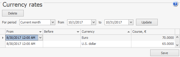 - Wybierz datę, od której kurs wymiany ma obowiązywać. Data końcowa zostanie ustawiona automatycznie po określeniu kolejnego kursu wymiany dla tej waluty.