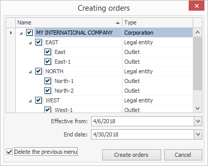 - Jeśli chcesz, aby lista cen zawierała tylko nowe produkty z aktualizacji, zaznacz opcję Usuń poprzednie menu. Jeśli nie jest zaznaczona, produkty z aktualizacji zostaną dodane do aktywnej listy cen.