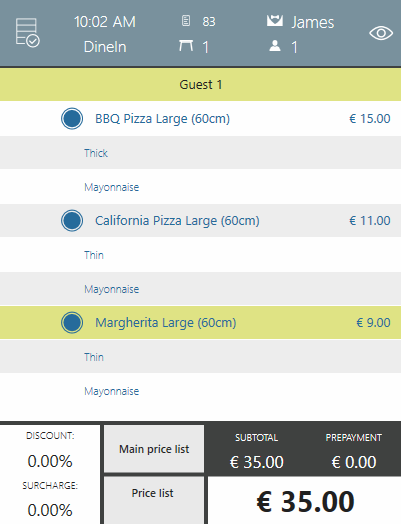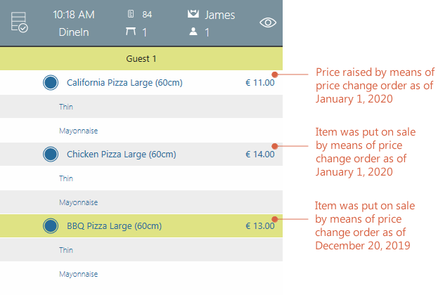W razie potrzeby pracownicy mogą ręcznie zmienić aktualną listę cen (np. aby sprzedać pozostałe pozycje Happy Hour).
