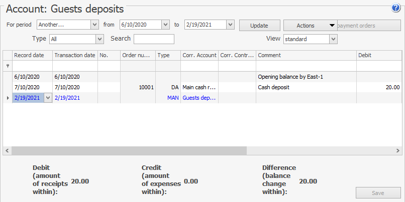- Wybierz Finanse > Plan Kont. Otwórz rekord konta "Depozyty Gości".