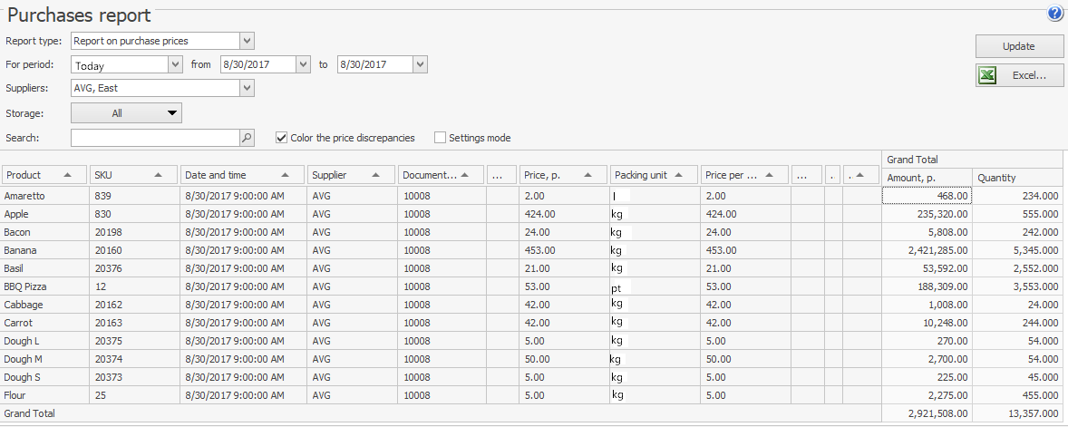 Uruchom Raport o cenach zakupu, aby zobaczyć dostawcę produktu i przeanalizować różnicę w cenach w cenniku oraz w dokumencie dostawy.