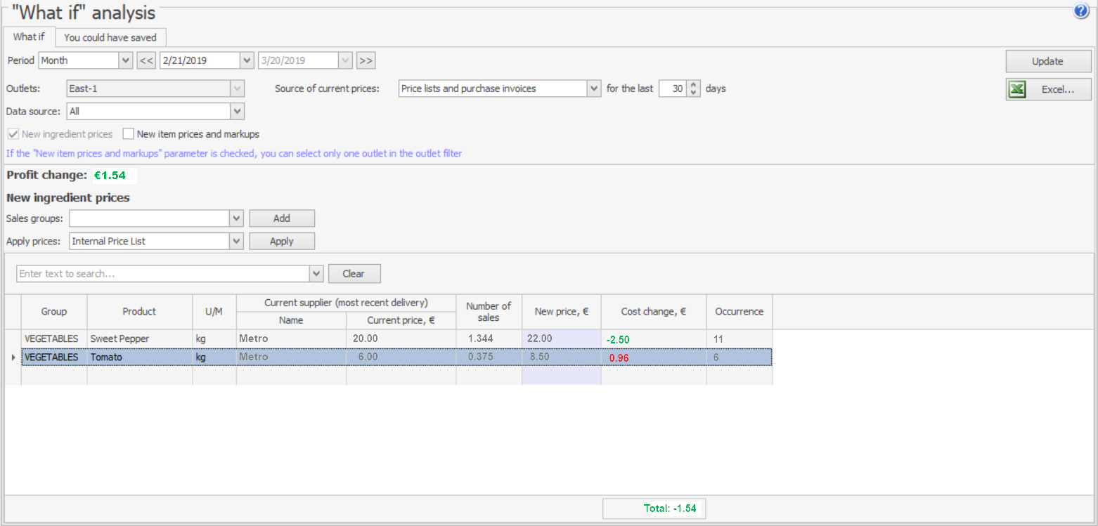 Aby sprawdzić, jaki efekt możesz uzyskać, zmieniając ceny pozycji menu: