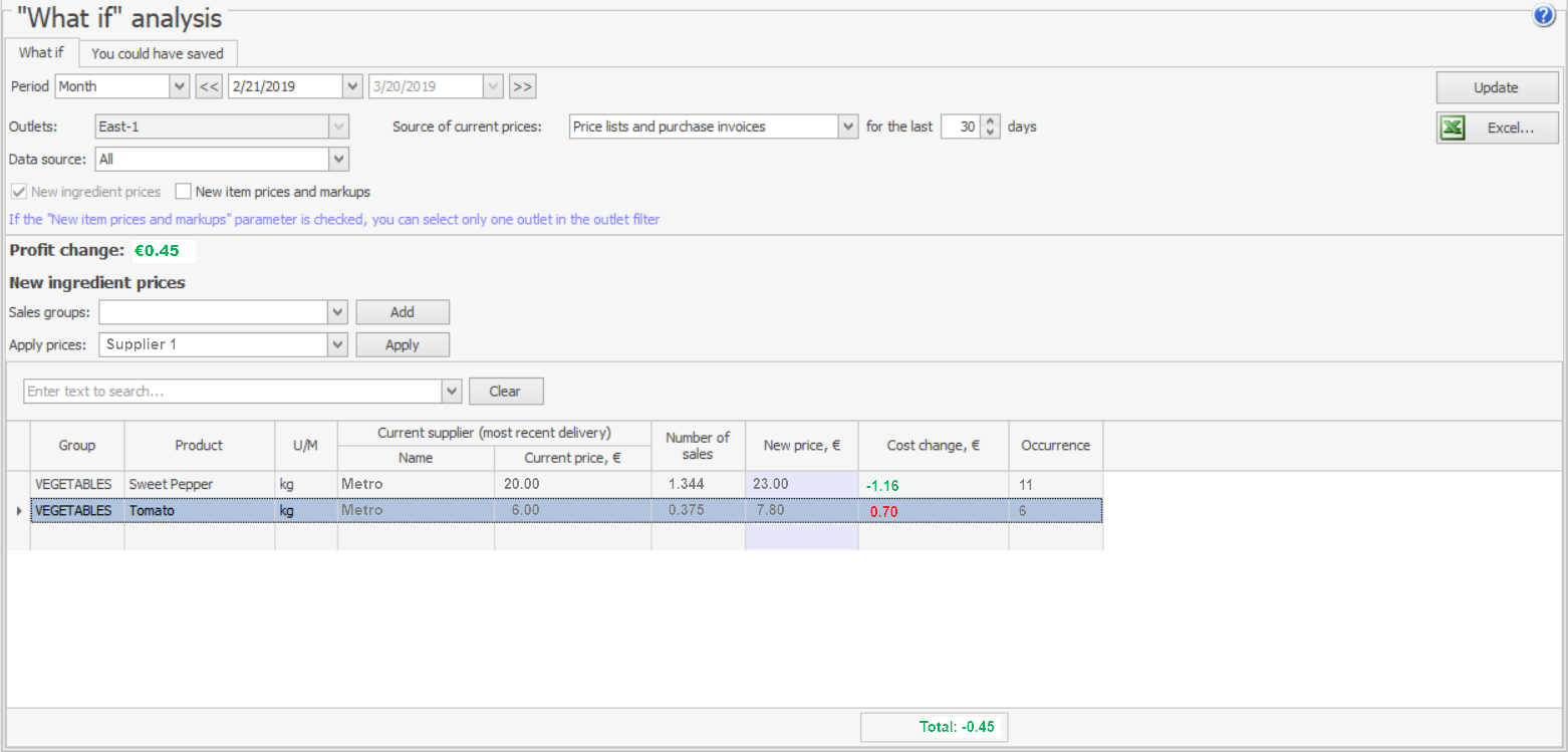 Załóżmy, że dostawca podnosi ceny. Może to spowodować wzrost cen pozycji menu, które przygotowujesz z tych surowców.