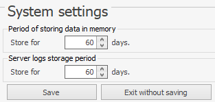 - Ustaw nową wartość w Okres przechowywania danych w pamięci i kliknij Zapisz.