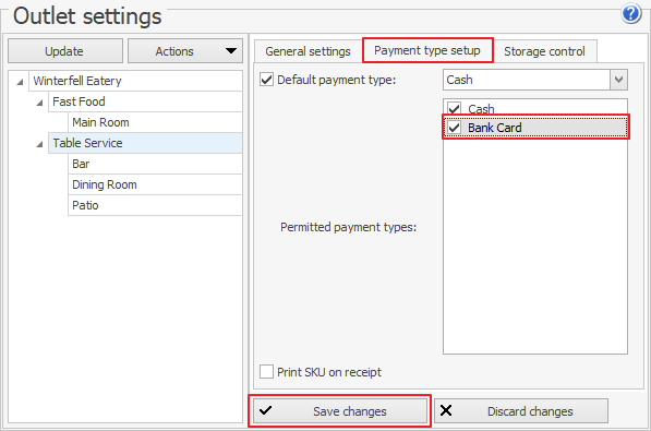 W przeciwnym razie Twój POS nie będzie mógł przetwarzać zamówień! Aby dodać tę metodę płatności do listy dozwolonych, przejdź do Administracja > Ustawienia Sklepu i wybierz zakładkę Konfiguracja Typów Płatności w wymaganej grupie. Na liście Dozwolonych Typów Płatności zaznacz typ, który właśnie dodałeś, i kliknij Zapisz zmiany.