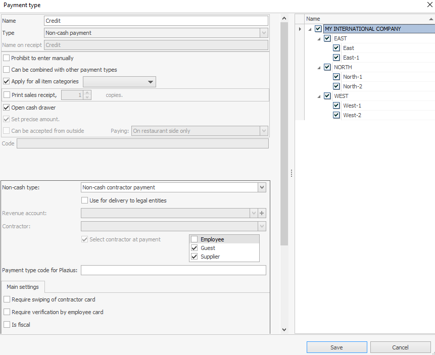 - Pracownik, gość lub dostawca jest wybierany podczas realizacji tego typu płatności w Front. Wybór kontrahentów do płatności na kredyt można ograniczyć, wybierając Pracownik, Gość lub Dostawca.
