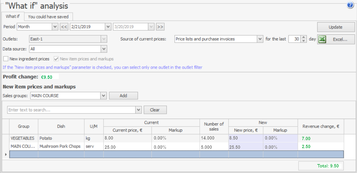 Aby sprawdzić, jaki efekt możesz uzyskać, zmieniając ceny pozycji w menu: