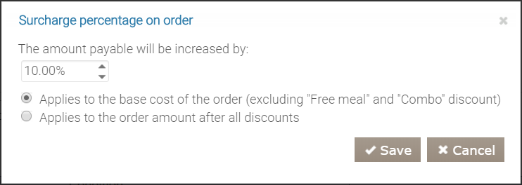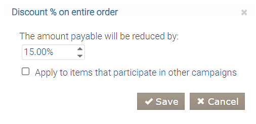 Określ procentową zniżkę, która ma zostać zastosowana do zamówienia. Ta zniżka obowiązuje po wszystkich innych zniżkach i specjalnych cenach – prezentach, combo itp.