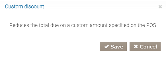 - Zniżka (kwota) – cena pozycji jest obniżona o tę kwotę, ale cena płatnych modyfikatorów pozostaje bez zmian.