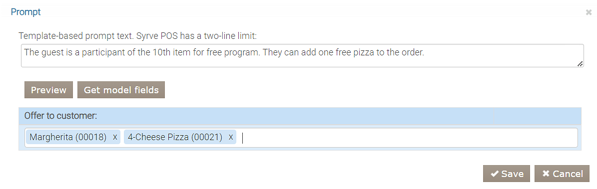 Wpisz tekst monitu w odpowiednie pole i wybierz pozycje z menu, które mają być oferowane gościom.